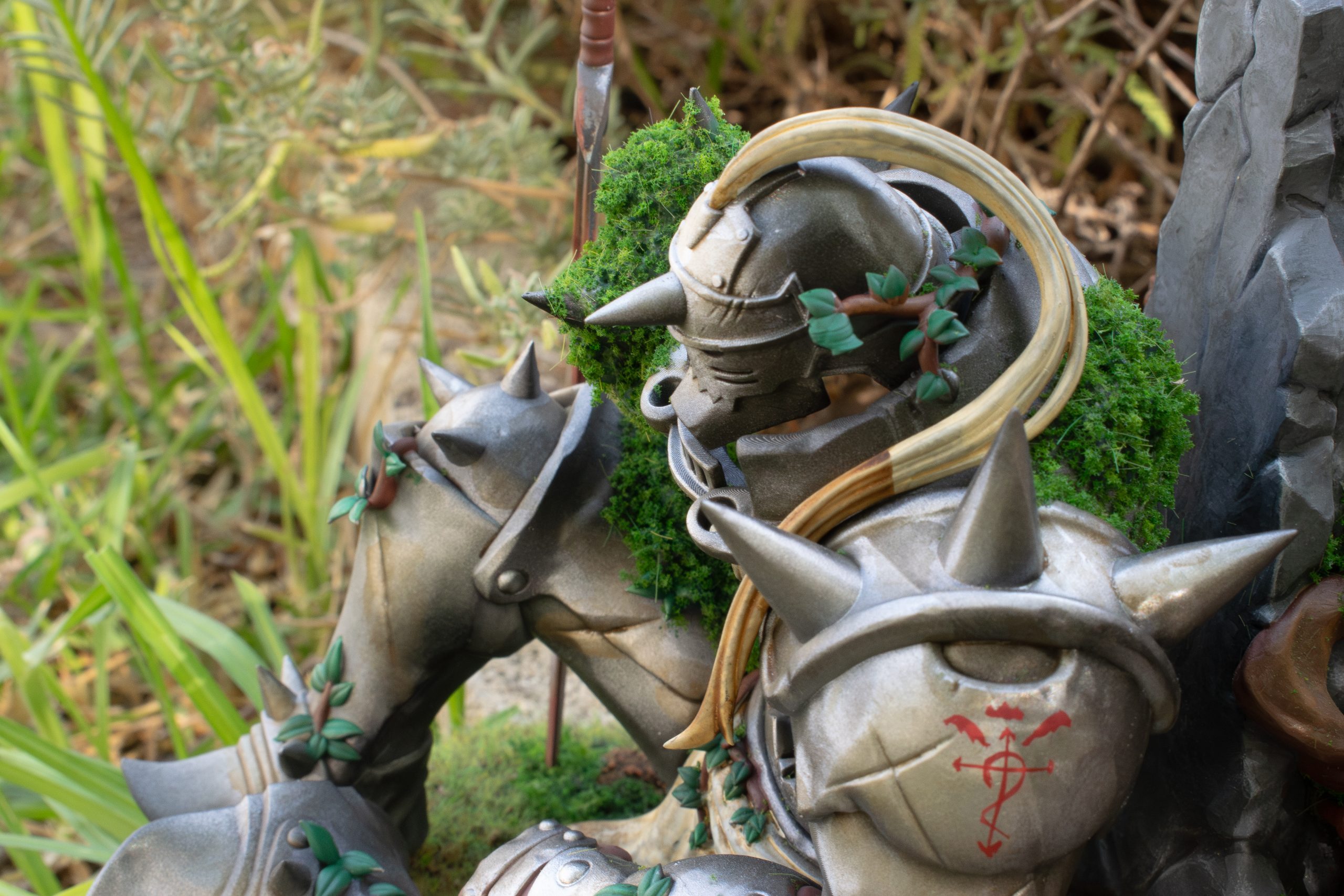 Diorama de Alphonse fullmetal diseñada por Nomnom. Impresion de filamento y resina. Pintado con spray, aerografo y pincel. Medidas 20 cm altura. Tiempo estimado de creaciones de 2/3 semanas.