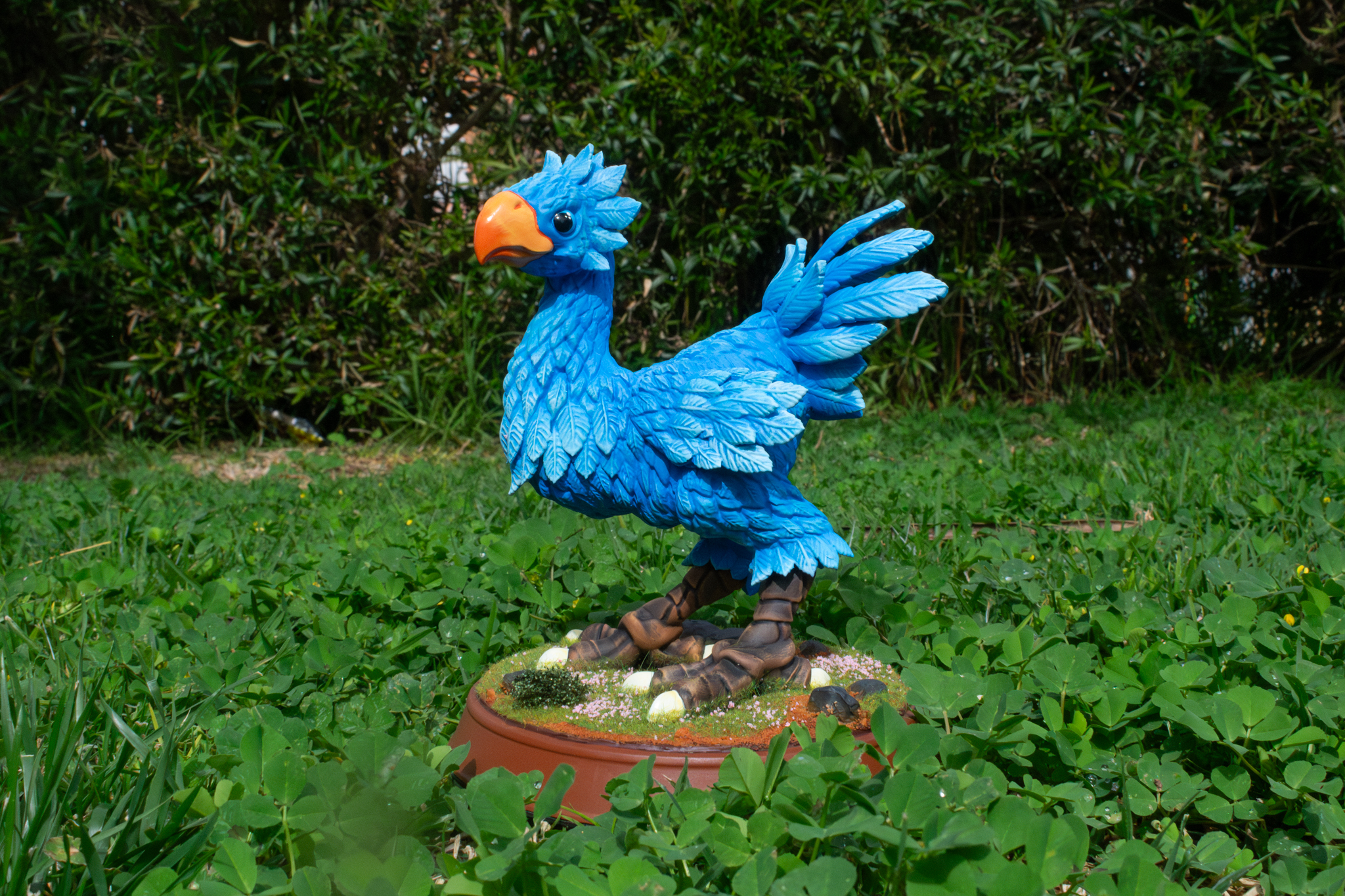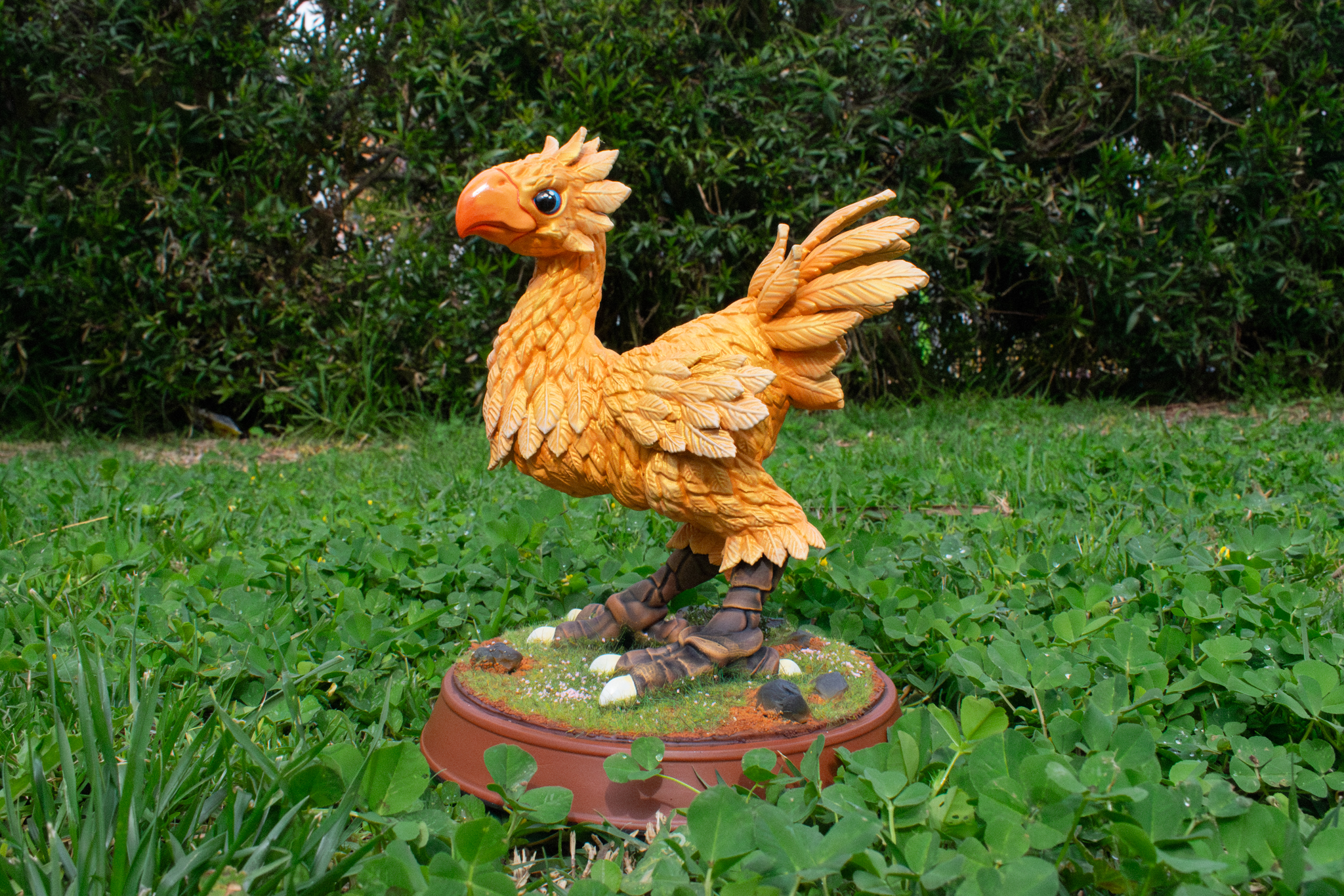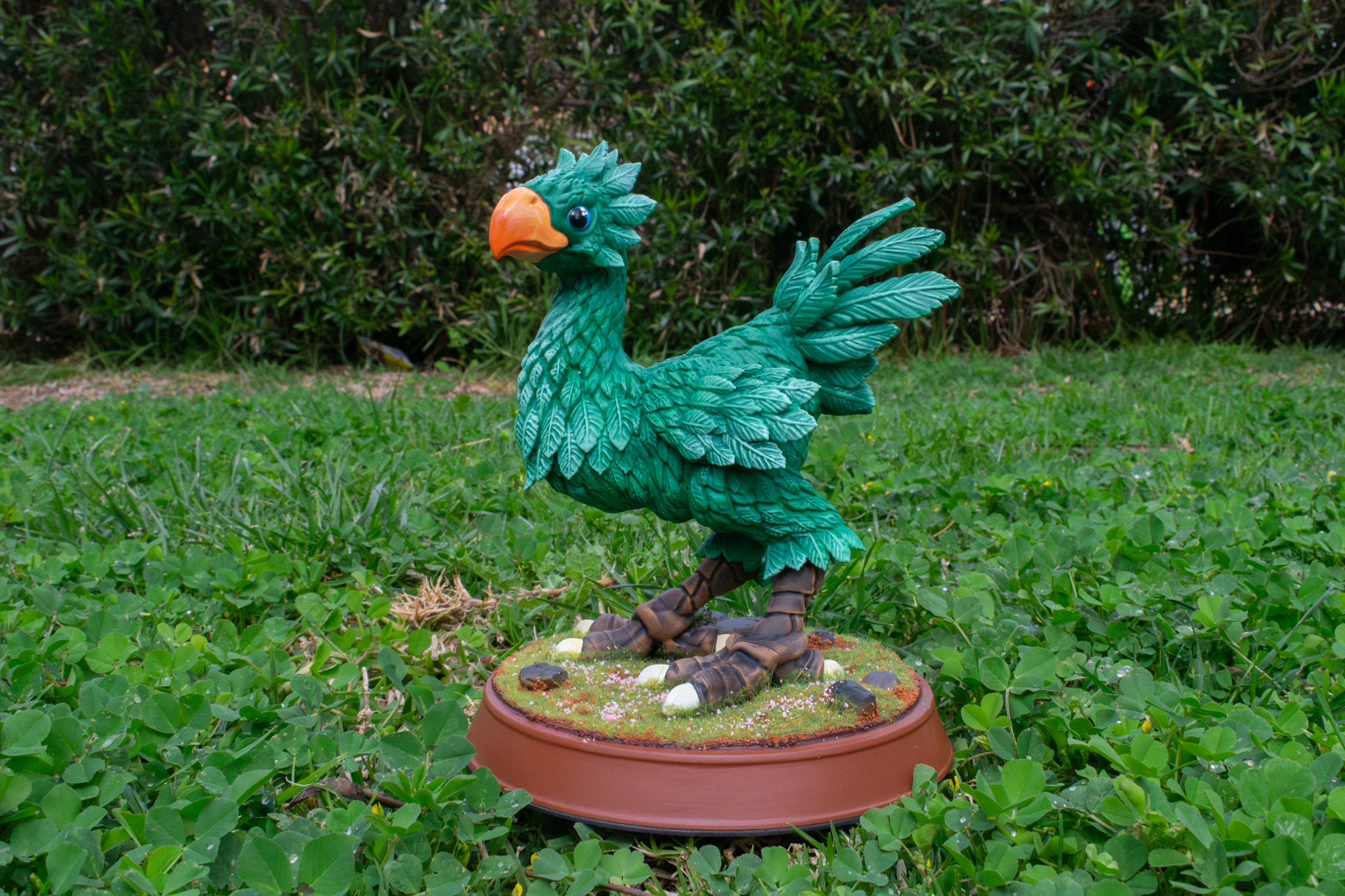 Diorama de Chocobo Final Fantasy. Impresion de filamento y resina. Pintado con spray, aerografo y pincel. Medidas 22 cm altura. Tiempo estimado de creaciones de 2/3 semanas.