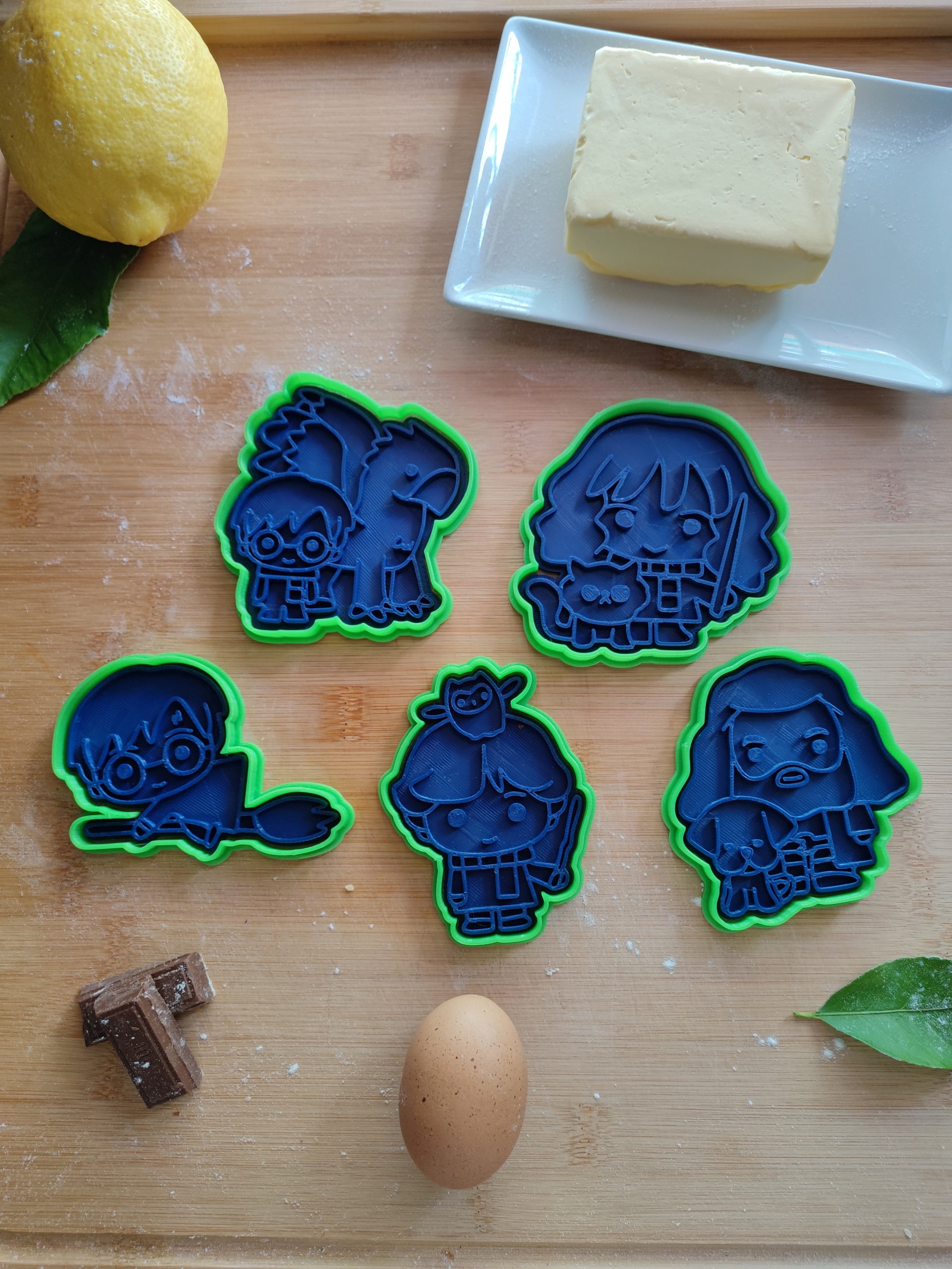 Cortadores de galleta de HarryPotter. Impresion3d de filamento apto para uso alimenticio. Receta incluida. Set de 5 cortadores. Cada cortador tiene una medida aproximada de 10cm. El color de los cortadores es aleatorio. Tiempo estimado de creaciones de 1/2 semanas.